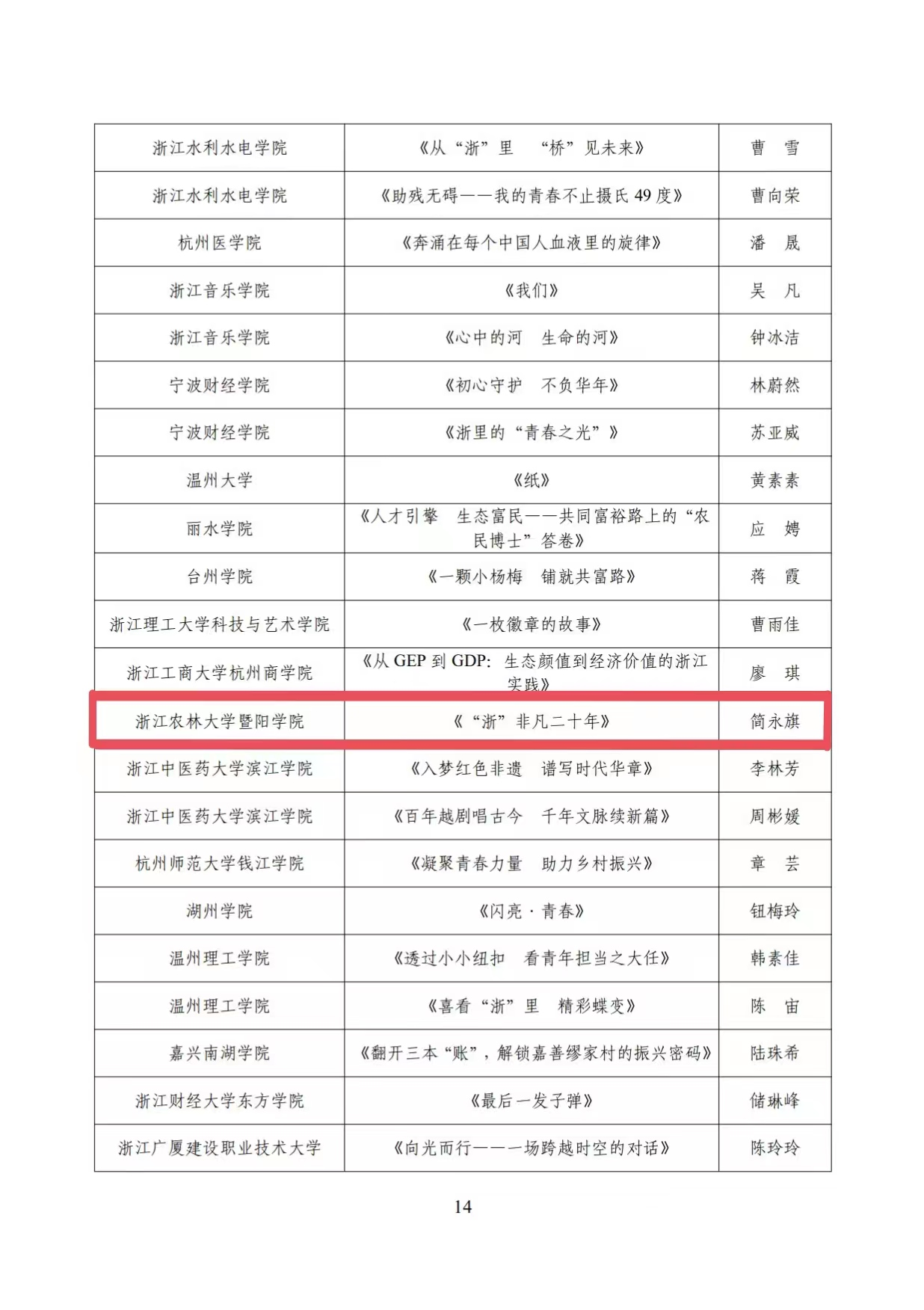 近日,浙江省高校思政微课大赛组委会发布了《关于公布2023年度浙江省高校思政微课大赛获奖单位、获奖作品的通知》。园林学院教师简永旗荣获教师组三等奖。