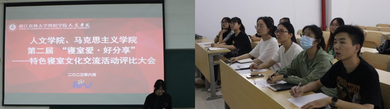 为了打造健康的寝室文化,引导大学生奋斗自强、志存高远、追求卓越,进一步深化文明寝室建设,打造“和谐、活力、奋进”的大学生活共同体,6月13日下午,人文学院、马克思主义学院举行了“寝室爱·好分享”——寝室文化交流活动,共有六个寝室参与本次特色寝室文化交流活动评比大会。人文学院、马克思主义学院英语专业学生党支部、城市管理专业学生党支部、公共事业管理专业学生第一党支部书记,学生会秘书长参加本次会议并担任评委。