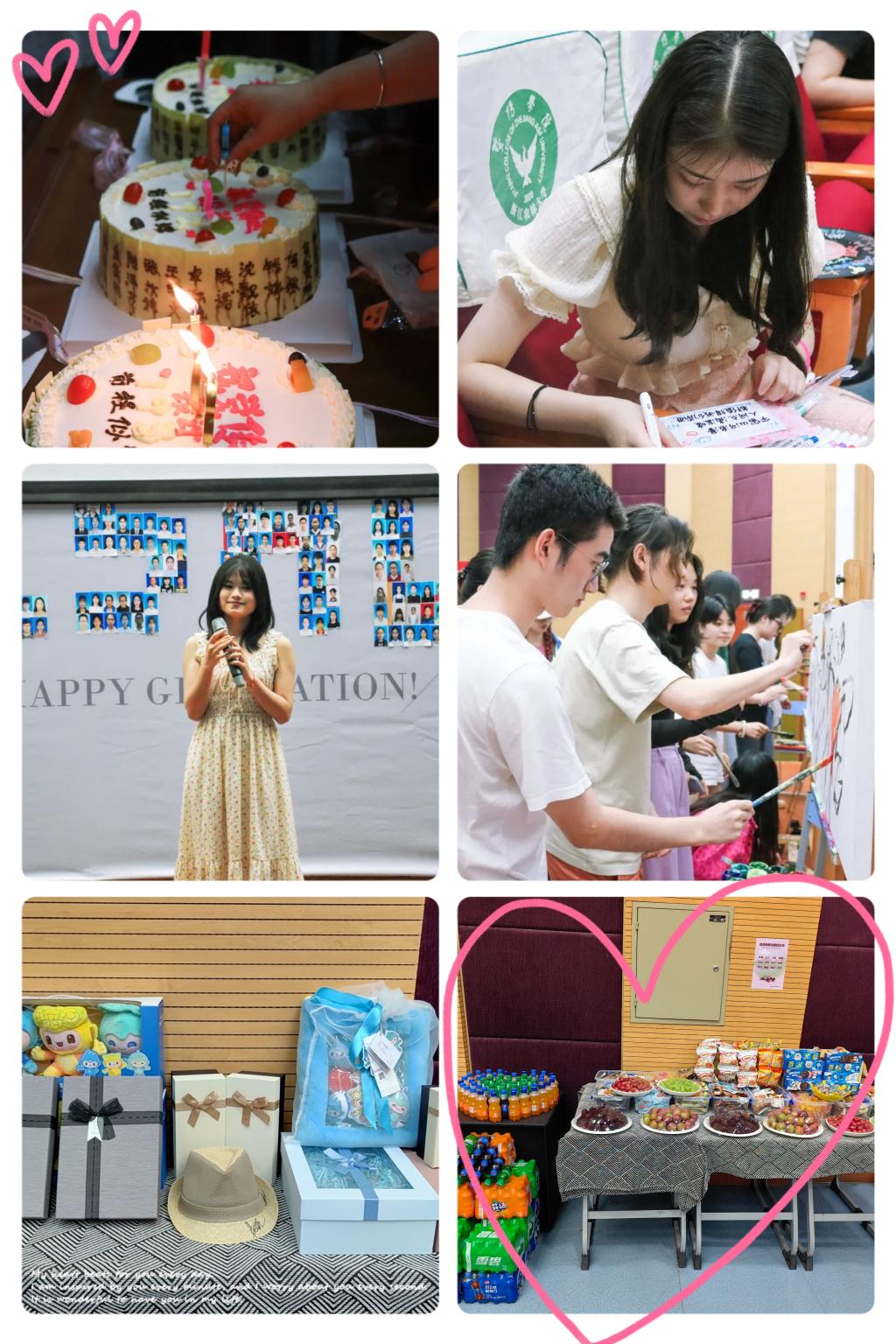 欢送会活动节目纷呈、气氛热烈。毕业生们在一张张入学照片中找寻初心,在投屏弹幕与明信片中写下片片祝福。师生在游戏互动、同台作画、同窗献歌中传递深情厚谊,溢彩流韵、共绘未来。师生代表在裱有每位毕业生姓名的蛋糕上点亮蜡烛,共同分享幸福、希冀未来。