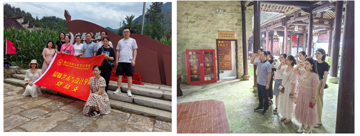 上午,教职工在马剑镇团委书记楼晶晶带领下参观了浦江县第一个中共农村党支部所在地——沈家村沈氏宗祠、浙东人民解放军金萧支队成立地——石门村和浙东行政公署第三专员督察公署旧址--戴氏宗祠。马剑镇保留了原汁原味的明清古建筑、古民居群,是艺术学院的实习实践地之一,不仅有着岁月的印记,更有着红色的历史。真实的抗战用品、革命历史照片和文字材料,以及讲解员的详细讲述,让教师们深切感受到中国共产党的伟大与光荣;铿锵有力的入党誓词激励着教职工不忘初心,牢记育人责任与时代使命,积极弘扬伟大建党精神,为强院建设奋勇当先。