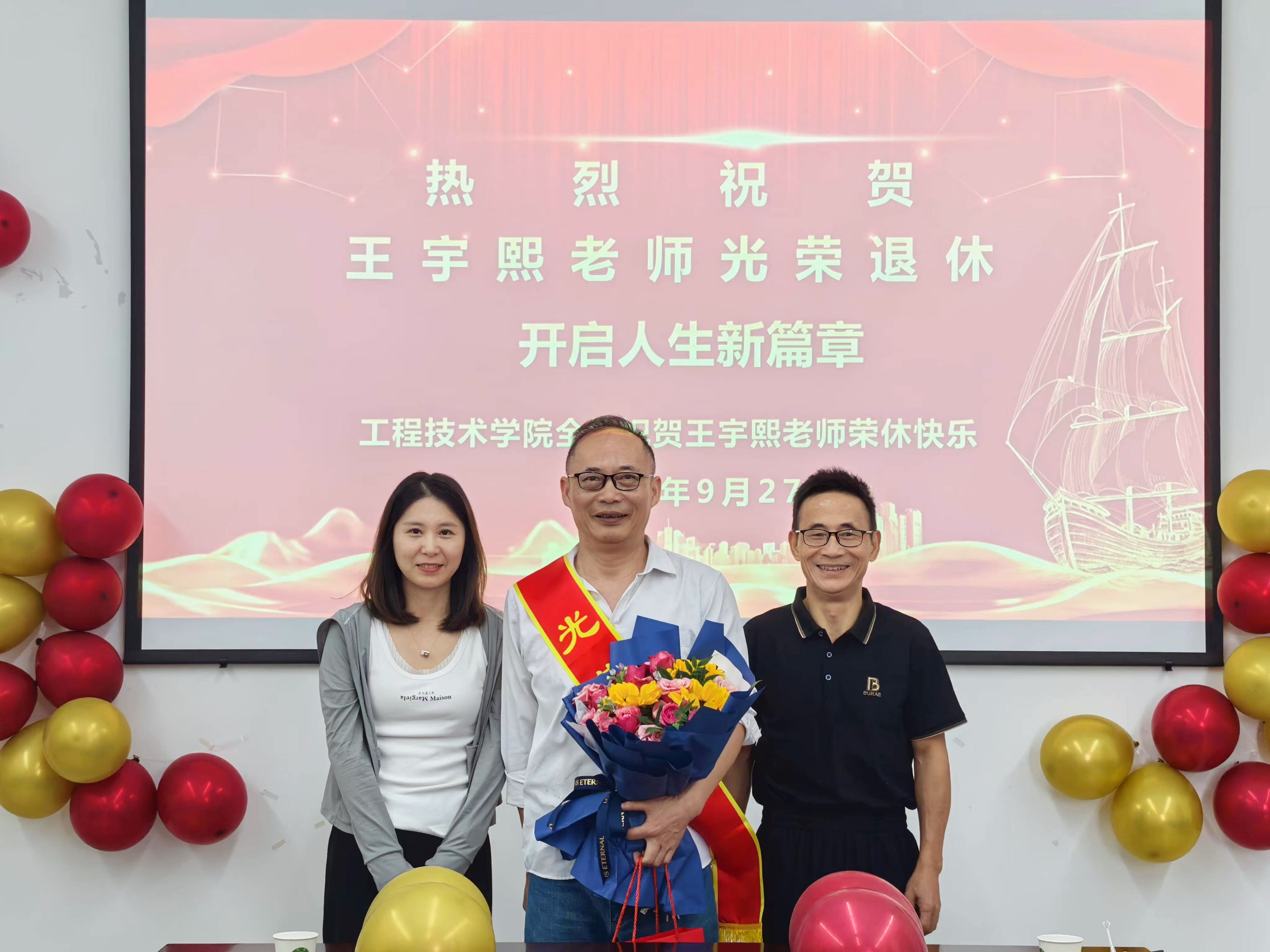 9月27日,工程技术学院在理工3402会议室为其举办了温馨而隆重的荣休仪式。学院院长徐光辉、党委书记洪昀、党委副书记李叔君及工程技术学院班子、相关专业老师们齐聚一堂,共同祝贺工程技术学院教师王宇熙光荣退休。