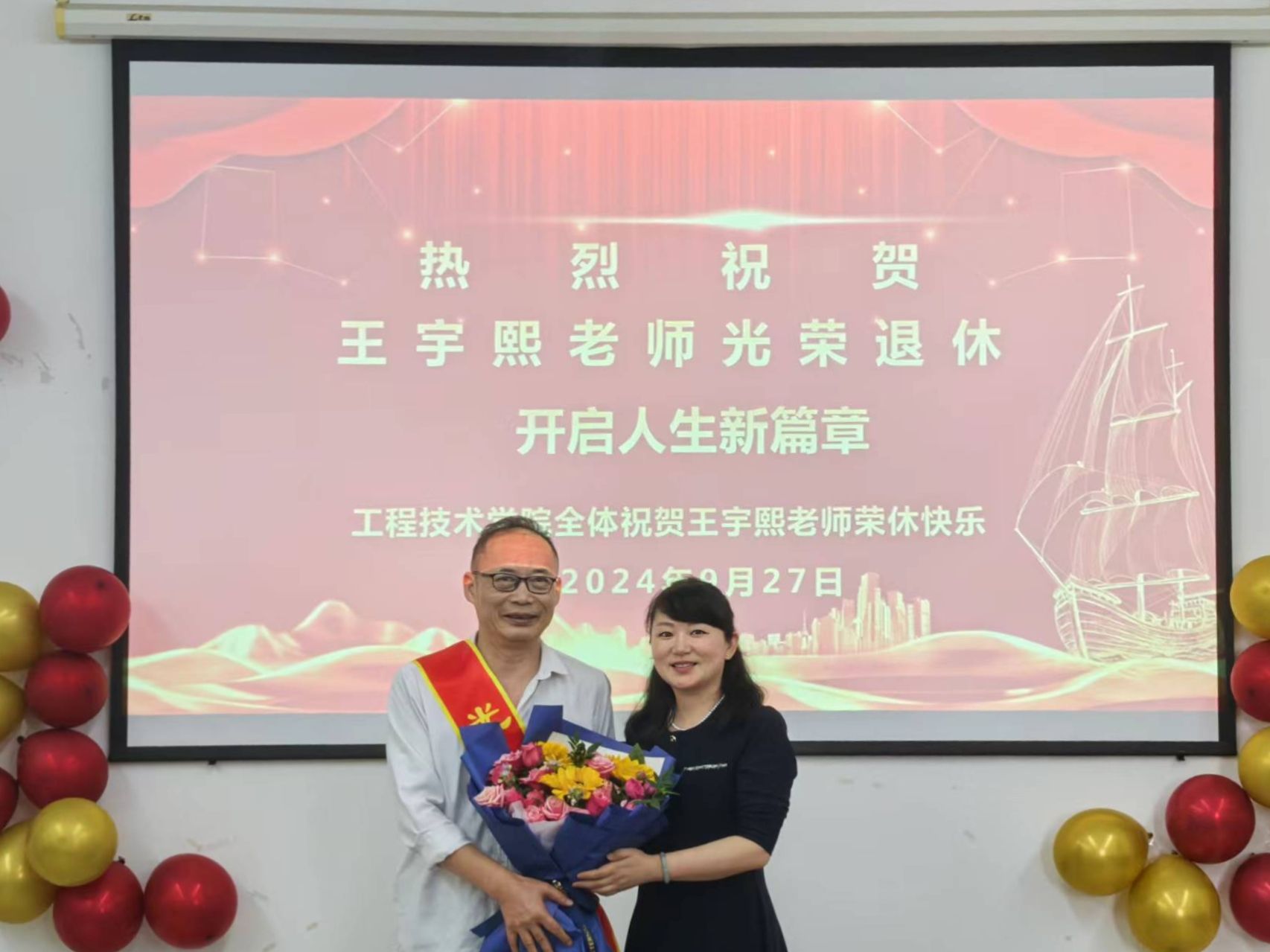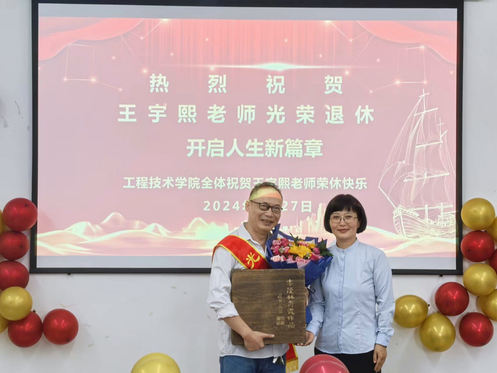 岁月践初心,荣退颂芳华。褪去的是青春容颜,不变的是教育初心。此次荣休仪式,不仅是对王宇熙教育生涯的致敬,更是工程技术学院弘扬尊师重教、团结友爱精神的一次生动实践。它像一首温暖的歌,唱响了岁月峥嵘与教育芳华的交响曲,激励着每一位教职工在新时代的征程上,携手并进,共创辉煌。