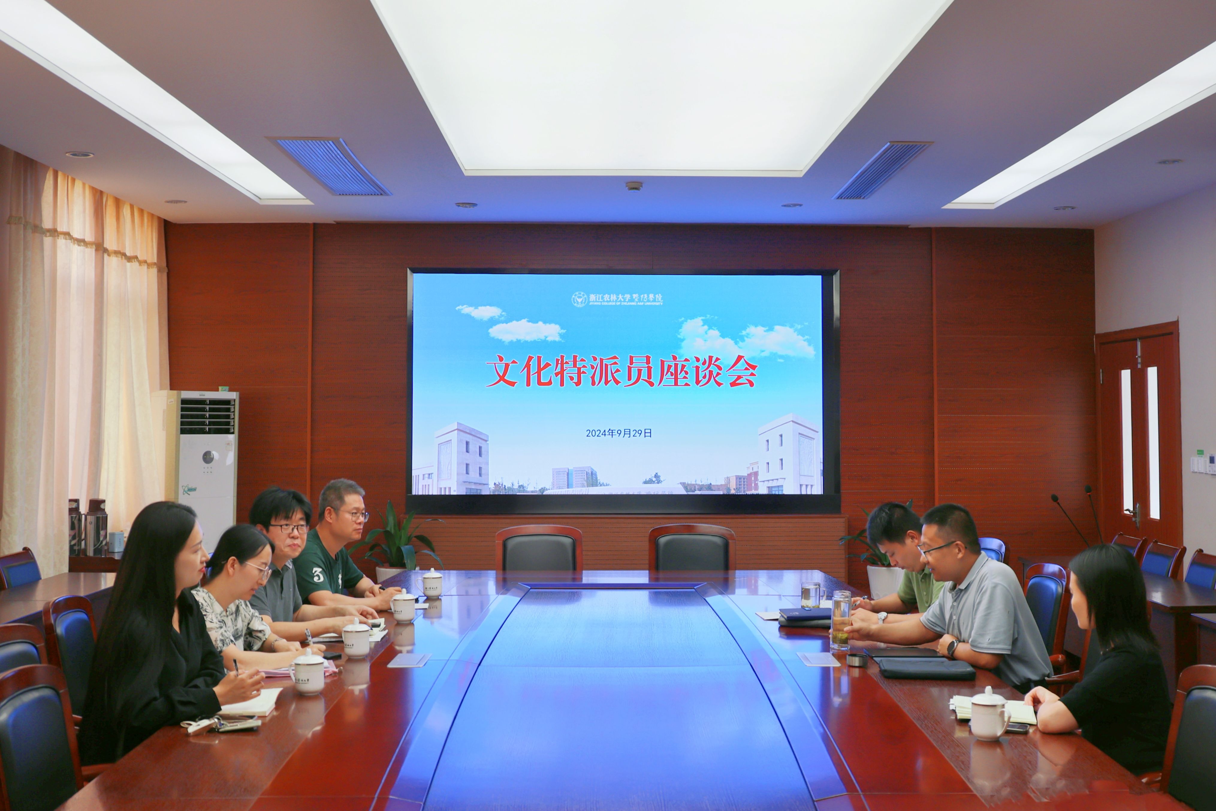 座谈会上,绍兴市文化特派员陈航峰传达了省文化特派员培训精神。学院的绍兴市文化特派员和诸暨市文化特派员介绍了各自文化项目进度,就如何加强校地合作、促进资源共享等方面进行了广泛而深入的交流,共同探索文化赋能乡村振兴的新模式。