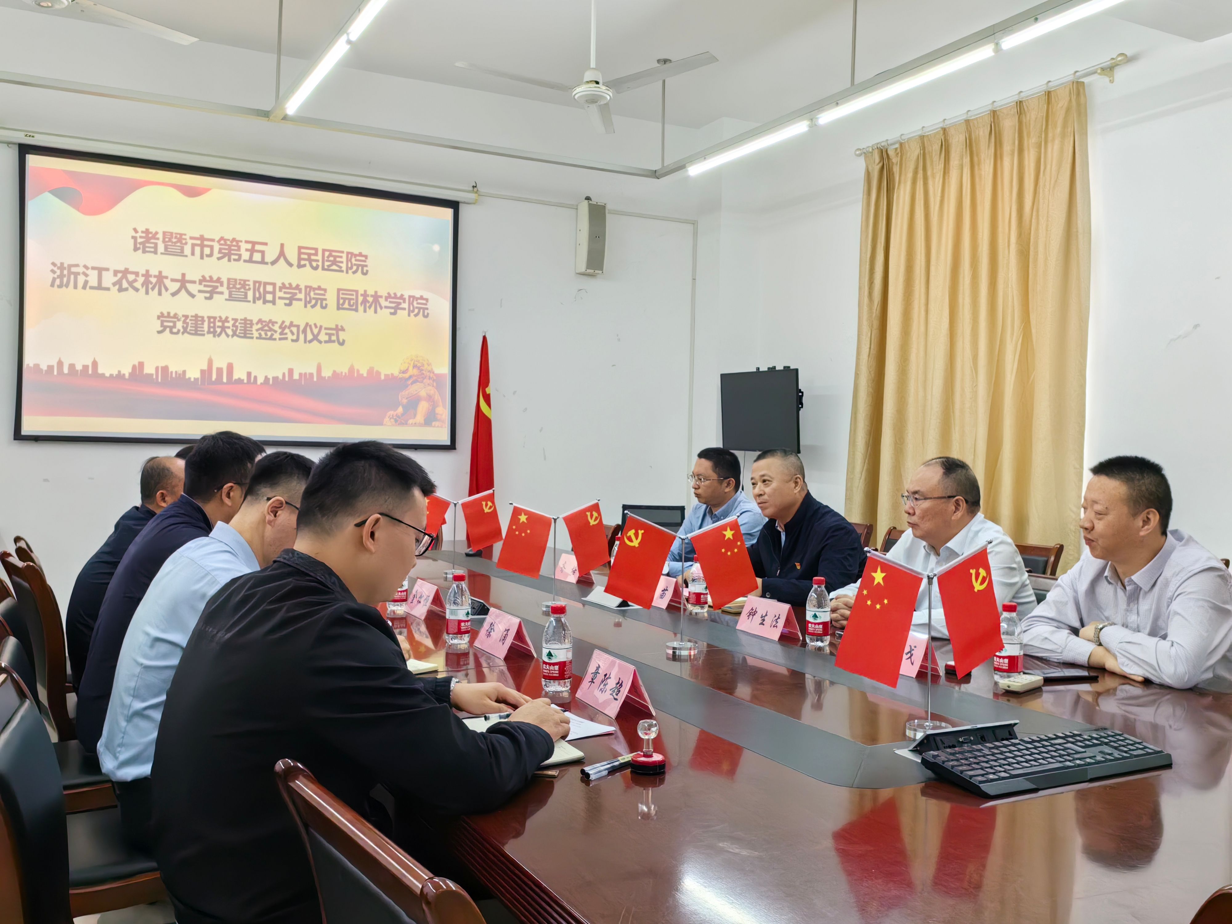 为深化党建联建共建,高质量推进党建引领医校融合发展。10月9日下午,园林学院与诸暨市第五人民医院党建联建签约仪式于理工3302顺利举行。学院副院长金松恒、诸暨市第五人民医院党总支书记何苗及领导班子成员,园林学院相关负责人出席活动。