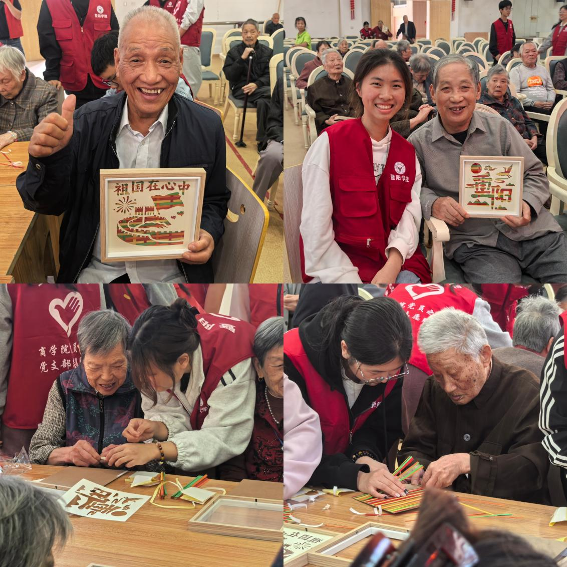 志愿者们还备好精美小礼品,纷纷上前为老人们献上节日的祝福,老人们的心情也像荡漾的春波般绽开,暨阳学子们的热情与老人们的慈祥绘成了秋日下最美的画卷,活动现场充满欢声笑语,志愿者与老人们交谈甚欢。