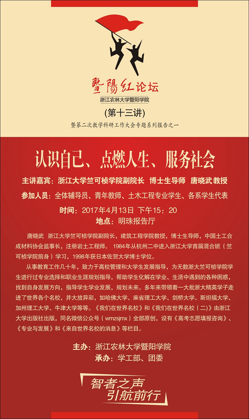 【“暨阳红论坛”第十三讲】认识自己、点燃人生、服务社会