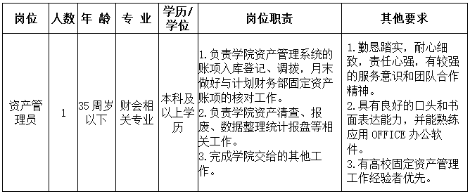 因工作需要,必赢76net线路官网公共保障部公开招聘资产管理岗工作人员1名(合同制)。现将有关事项公告如下:
