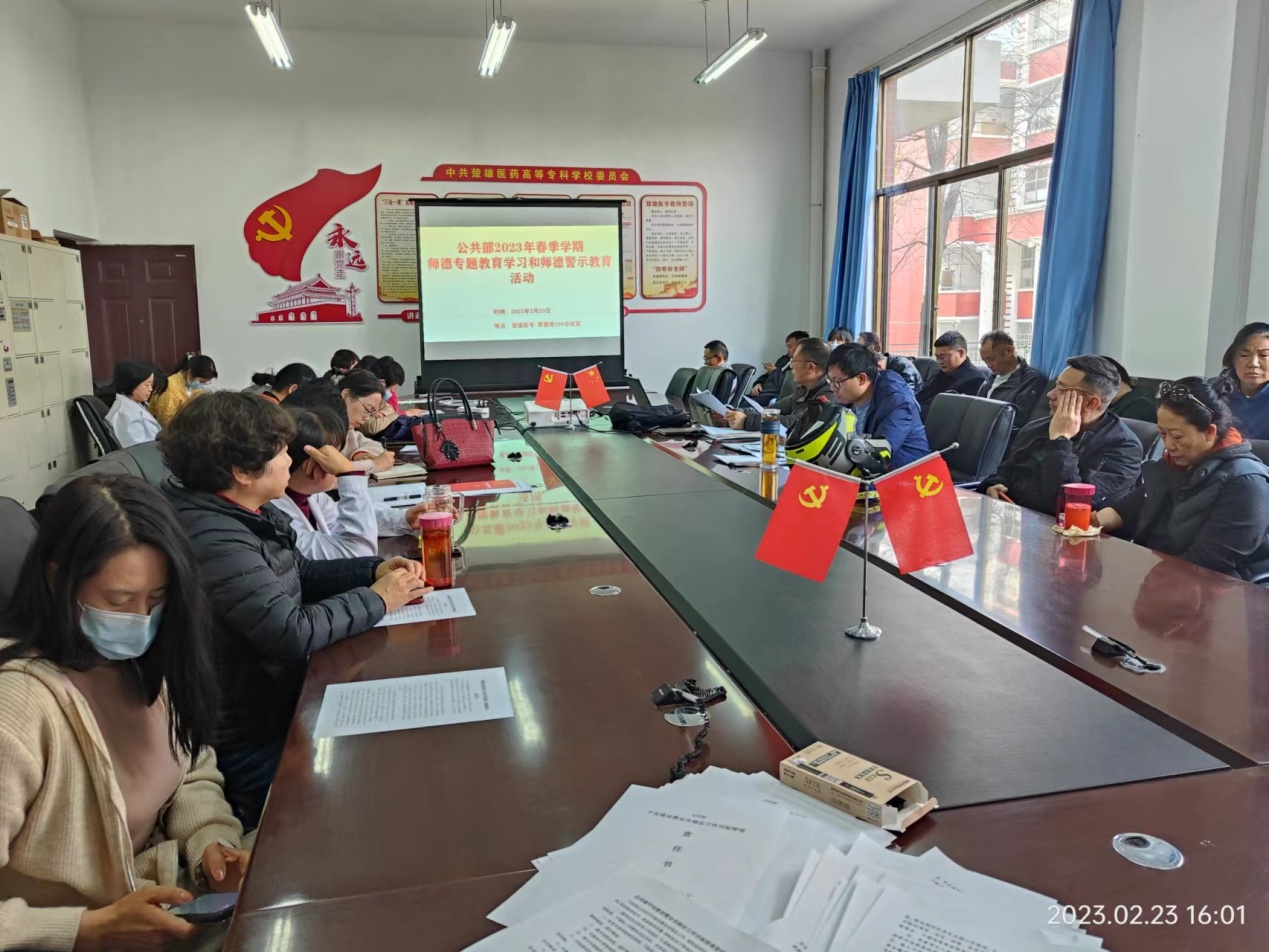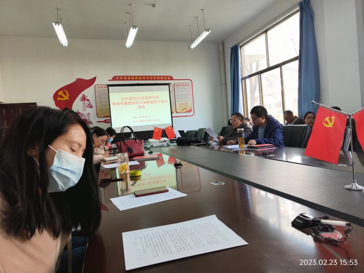 根据《中共Beat365中文官方网站委员会师德专题教育实施方案》的精神,公共部组织全体教师于2月23日15:50在厚德楼开展师德专题教育学习和师德警示教育活动。