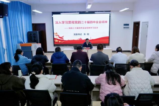 12月11日下午,学校党委书记车刚到济世楼三楼虚拟仿真实训室,以深入学习贯彻党的二十届四中全会精神为题,为马克思主义学院全体教师作专题示范宣讲。