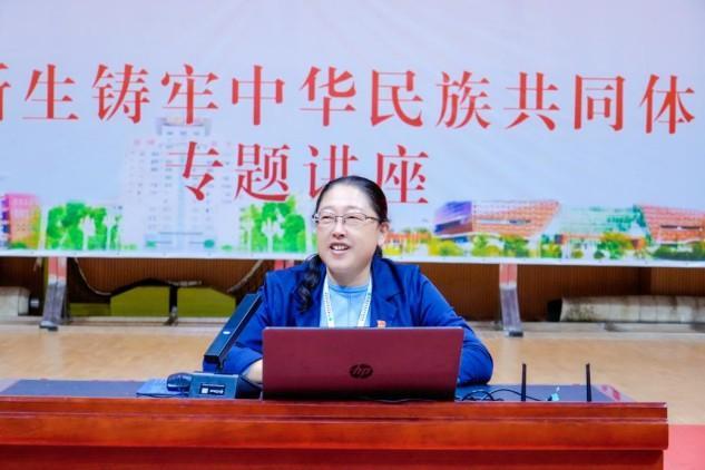 王艳萍采用“理论解读+历史故事+实践案例+互动问答”等方式,从“坚定铸牢中华民族共同体意识”“历史长河中民族团结的光辉印记”“答好民族团结进步必答题”“当好民族团结进步践行者和推动者”四个方面结合“五史”,有机融入云南实践和楚医案例,围绕深入学习贯彻习近平总书记关于加强和改进民族工作的重要思想,贯彻落实习近平总书记考察云南重要讲话重要指示精神,生动阐释铸牢中华民族共同体意识的丰富内涵和实践路径,为全体军训新生上了一堂内涵丰富、逻辑严密、生动鲜活的“团结”课。