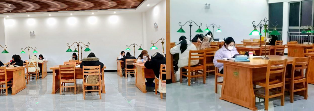 图书馆内,原木桌椅旁的灯光温柔洒落,楚医学子们伏案苦读,将零散的知识点细细梳理。笔尖划过纸张的沙沙声,与身旁同伴的专注神情交织,构成了备考季里最动人的画面。